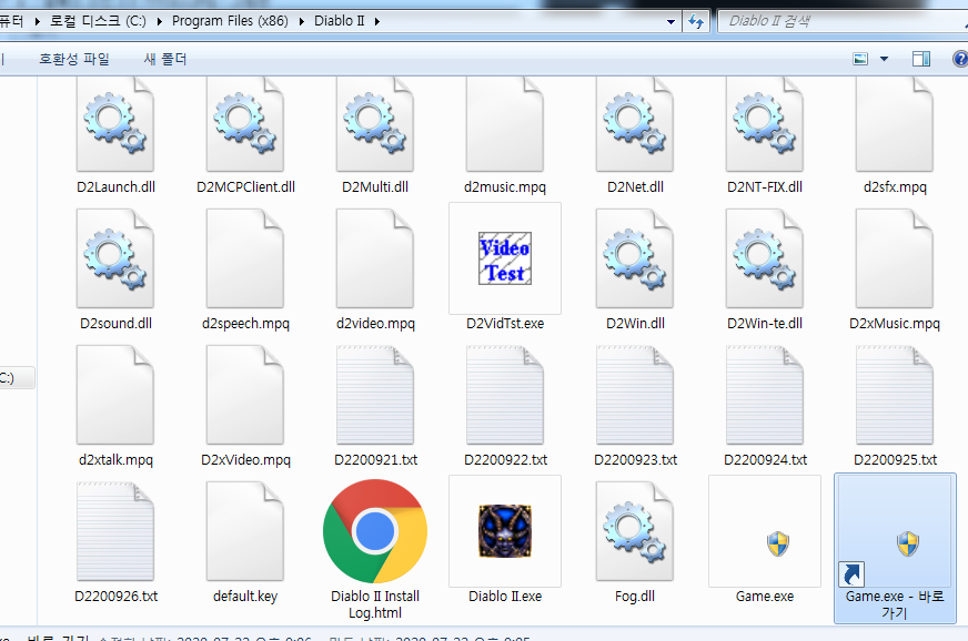 2. 디아블로2 폴더에 있는 game.exe 파일의 오른쪽 버튼을 눌러 바로가기 만들기를 누르세요.