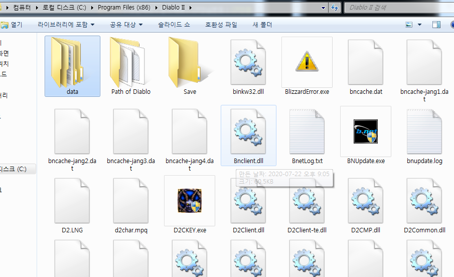 1. data.zip 파일을 다운로드 받으시고 아래와 같이 Diablo ii 폴더에 압축을 푸세요.